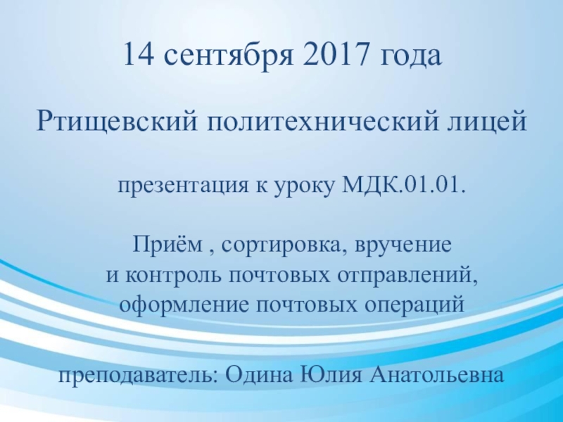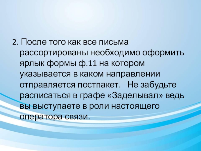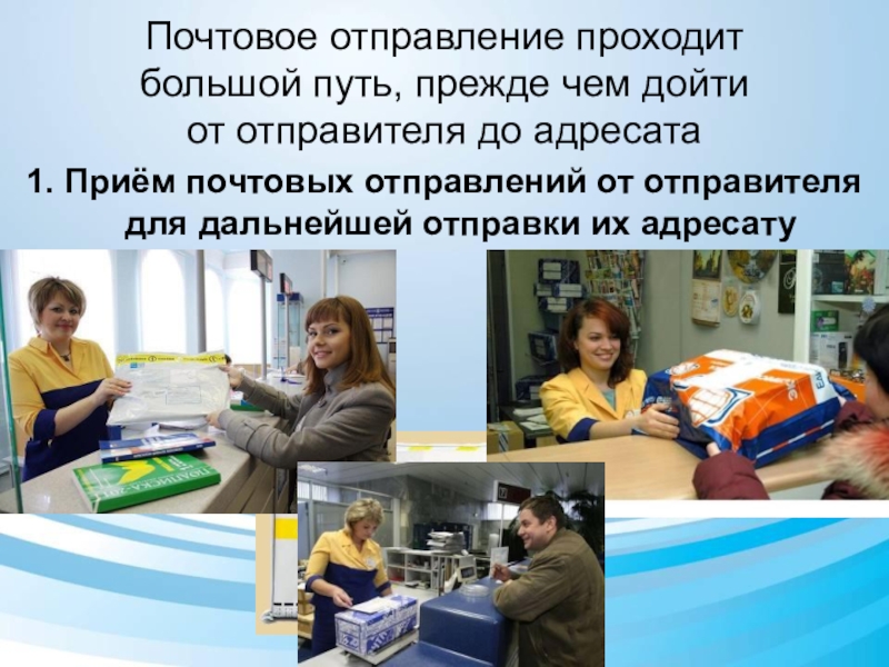 1. Приём почтовых отправлений от отправителя для дальнейшей отправки их адресату