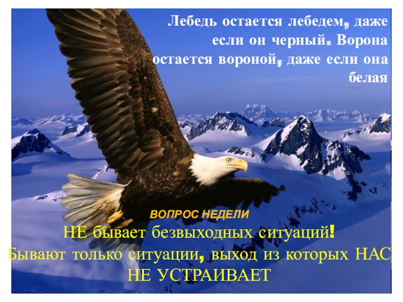 Слайд 74Лебедь остается лебедем, даже если он черный. Ворона остается вороной, даже