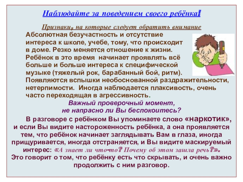 Наблюдайте за поведением своего ребёнка!