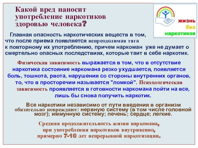употребления наркотиков.