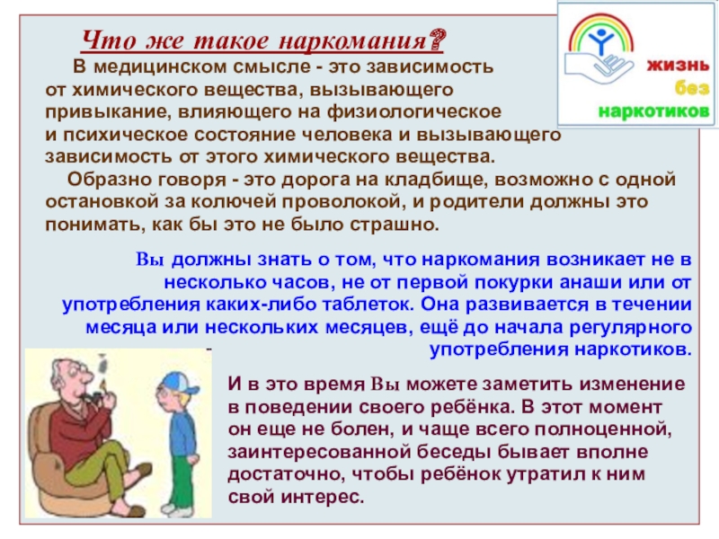 Вы должны знать о том, что наркомания возникает не в