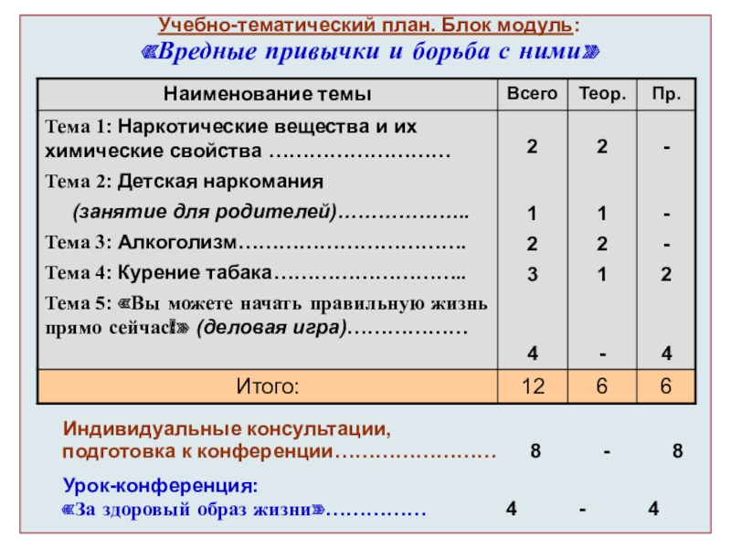 подготовке их к конференции отводится - 8 часов.