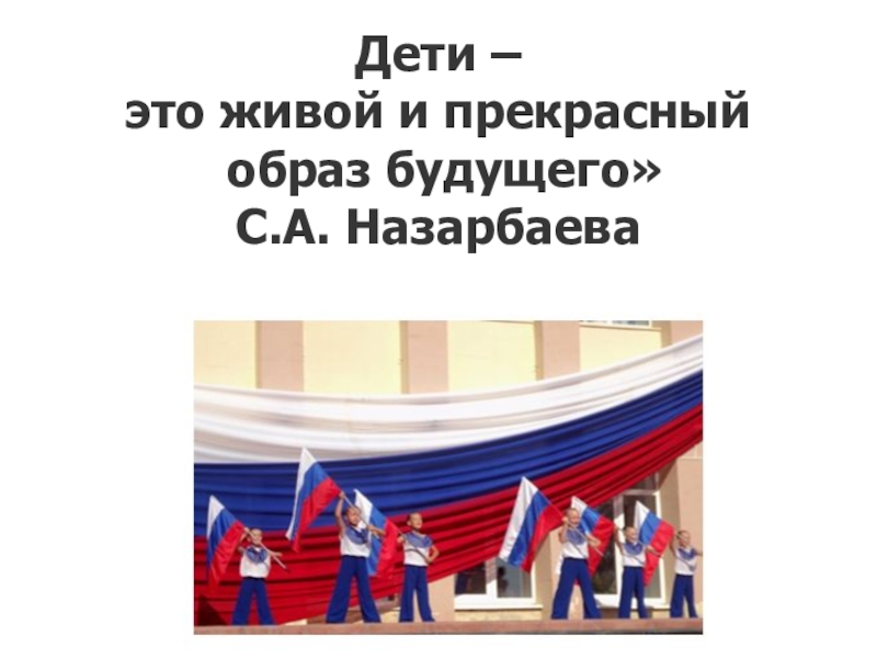 Слайд 8Дети – это живой и прекрасный  образ будущего» С.А. Назарбаева
