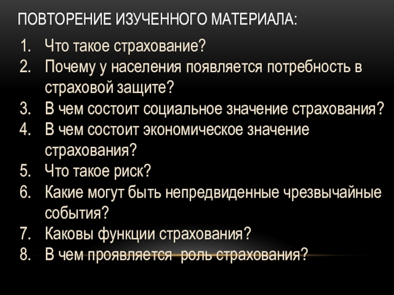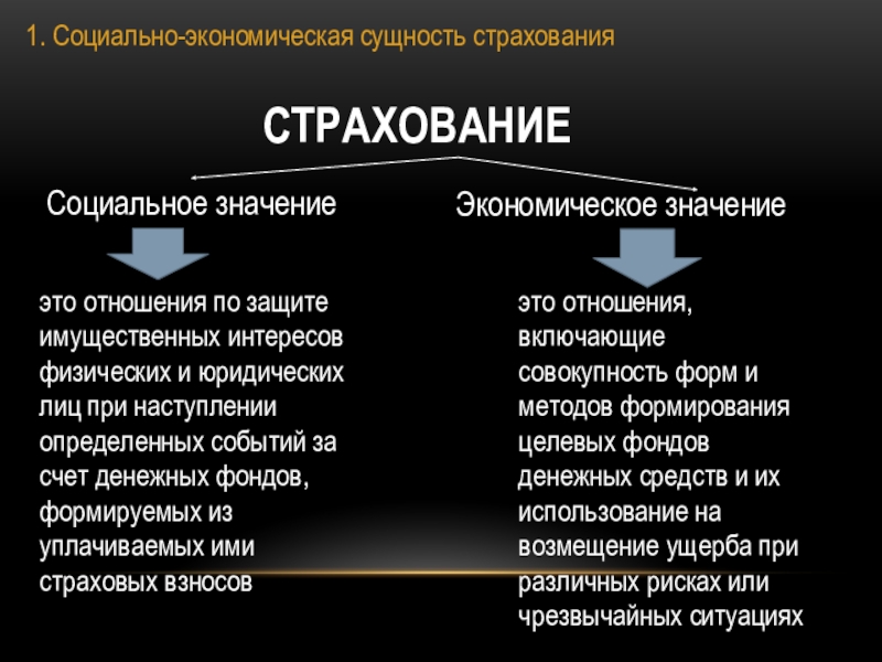 это отношения, включающие совокупность форм и методов формирования целевых фондов денежных средств и их использование на возмещение ущерба при различных рисках или чрезвычайных ситуациях