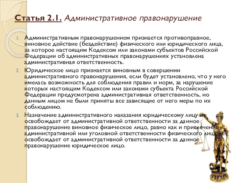 Административным правонарушением признается противоправное, виновное действие (бездействие) физического