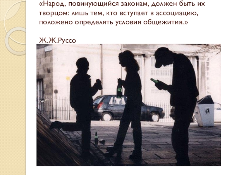 Слайд 9«Народ, повинующийся законам, должен быть их творцом: лишь тем, кто вступает