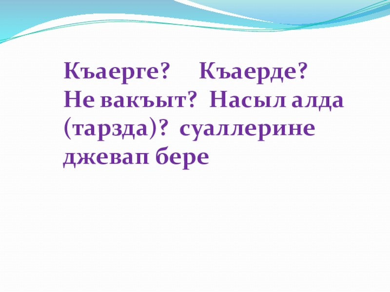 Къаерге?   Къаерде?           Не вакъыт? Насыл