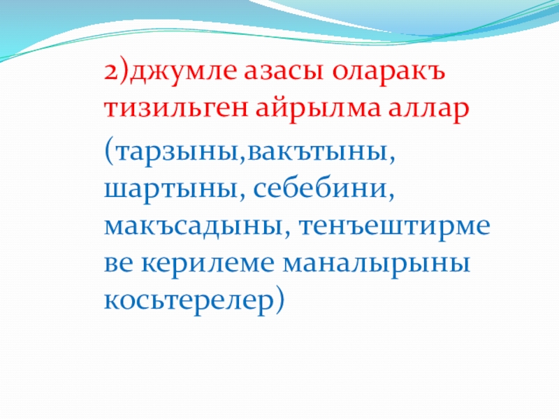 Слайд 152)джумле азасы оларакъ тизильген айрылма аллар