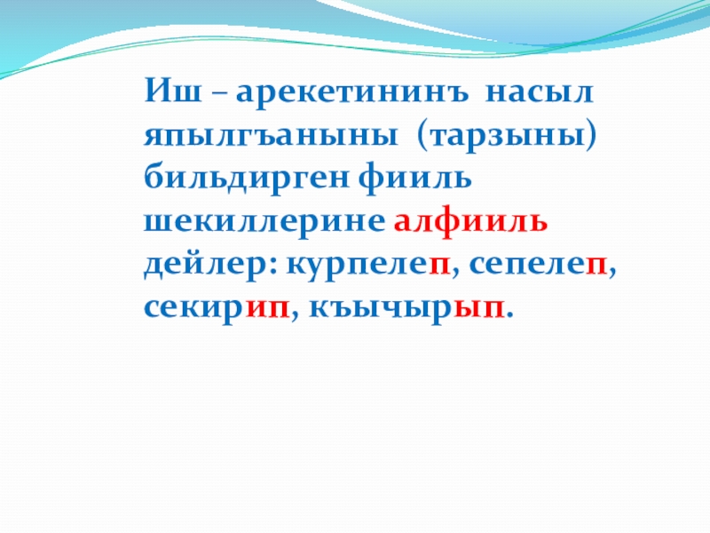 Слайд 5Иш – арекетининъ насыл япылгъаныны (тарзыны) бильдирген фииль
