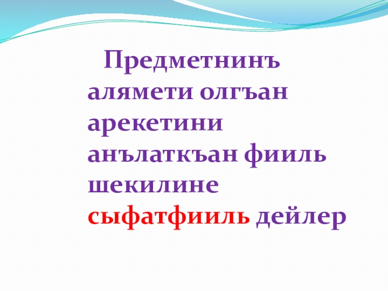 Слайд 8 Предметнинъ алямети олгъан арекетини анълаткъан фииль шекилине сыфатфииль дейлер