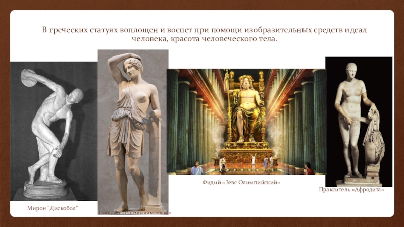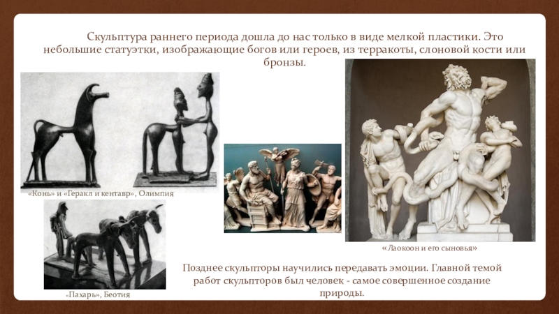Позднее скульпторы научились передавать эмоции. Главной темой работ скульпторов был человек - самое совершенное создание природы.
