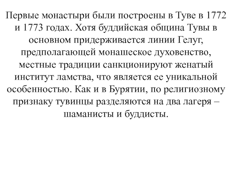 Слайд 8Первые монастыри были построены в Туве в 1772 и 1773 годах.