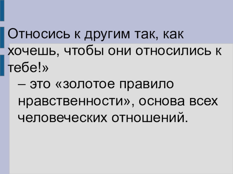 – это «золотое правило нравственности», основа всех человеческих отношений.