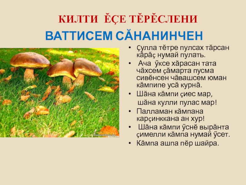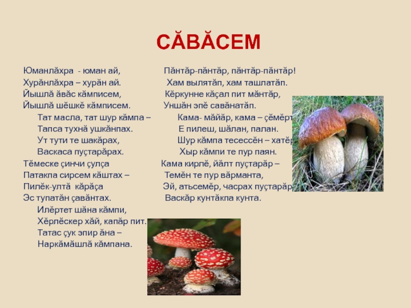 Эпӗ кӑмпа яшк… ҫиме юрататӑп.