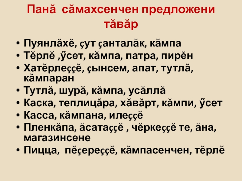Слайд 12Панӑ сӑмахсенчен предложени тӑвӑр