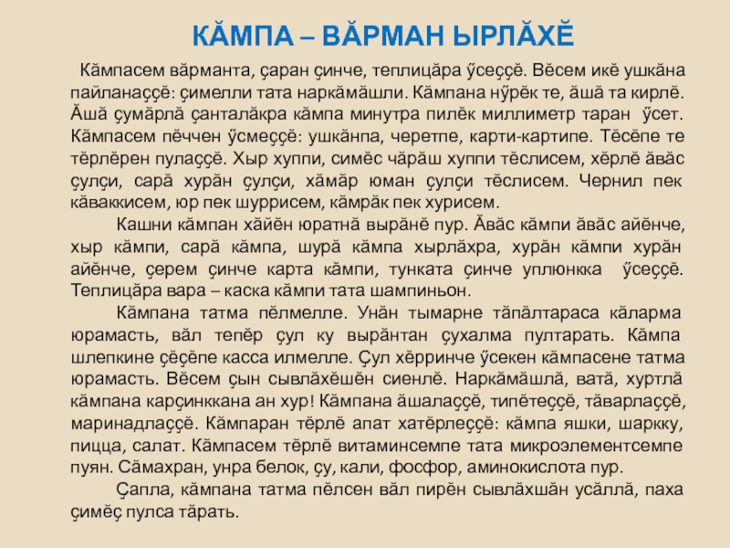 Слайд 1КĂМПА – ВĂРМАН ПУЯНЛĂХĔ