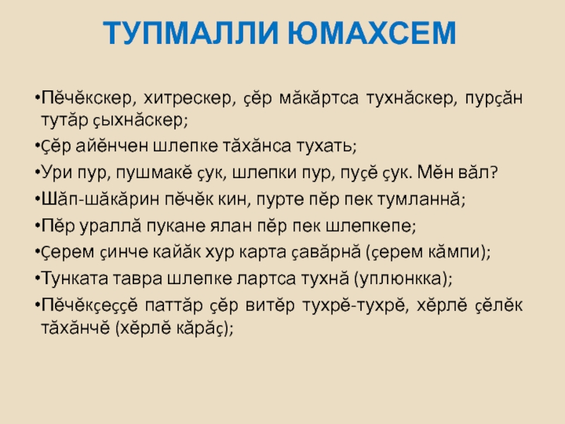 Слайд 4ТУПМАЛЛИ ЮМАХСЕМ