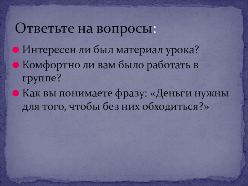 Это сайт презентаций, где можно хранить и обмениваться своими презентациями, докладами, проектами, шаблонами в формате PowerPoint с другими пользователями. Мы помогаем школьникам, студентам, учителям, преподавателям хранить и обмениваться учебными материалами.