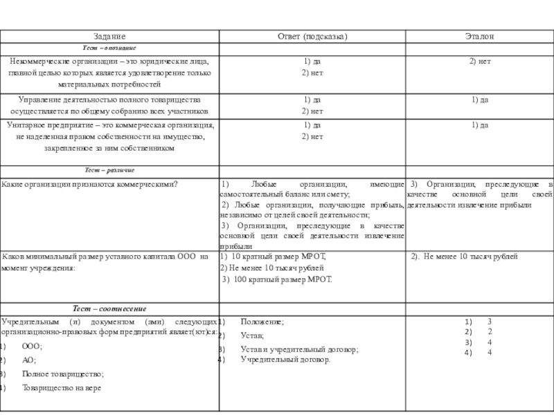 «Организационно-правовые формы предприятий»