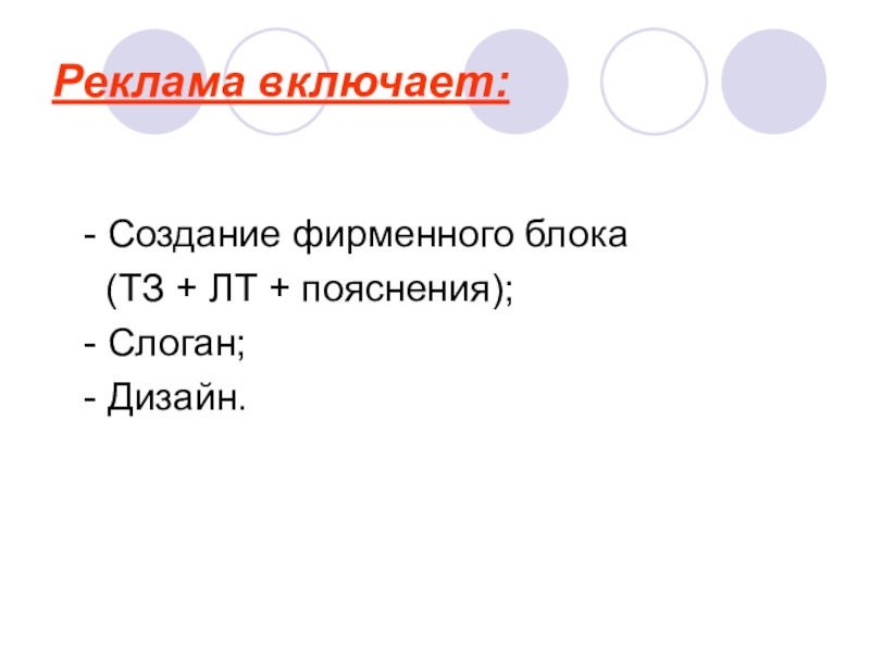 Слайд 29Реклама включает: