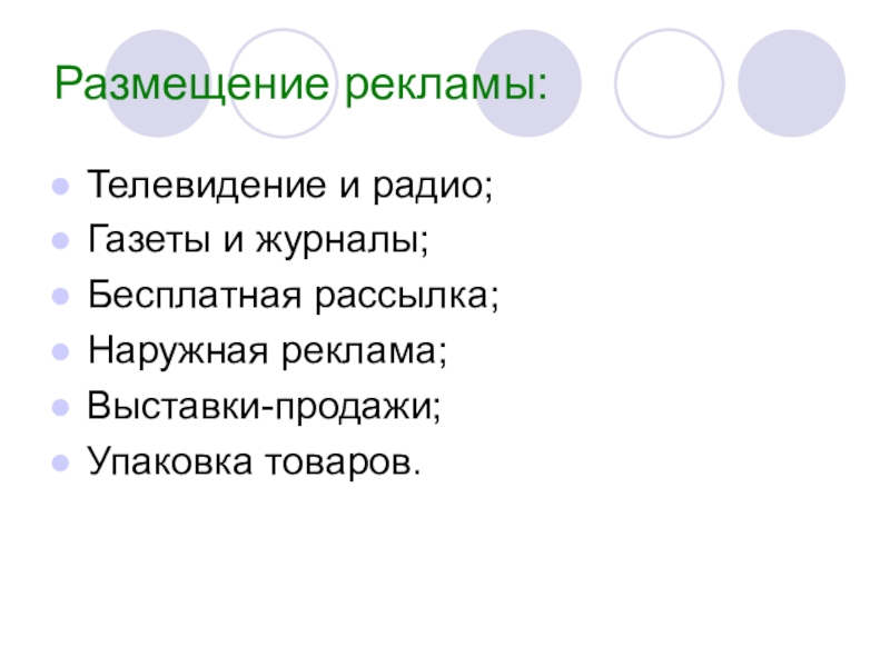 Слайд 6Размещение рекламы: