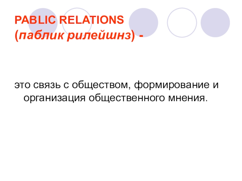PABLIC RELATIONS  (паблик рилейшнз) - это связь с обществом, формирование и организация общественного мнения.