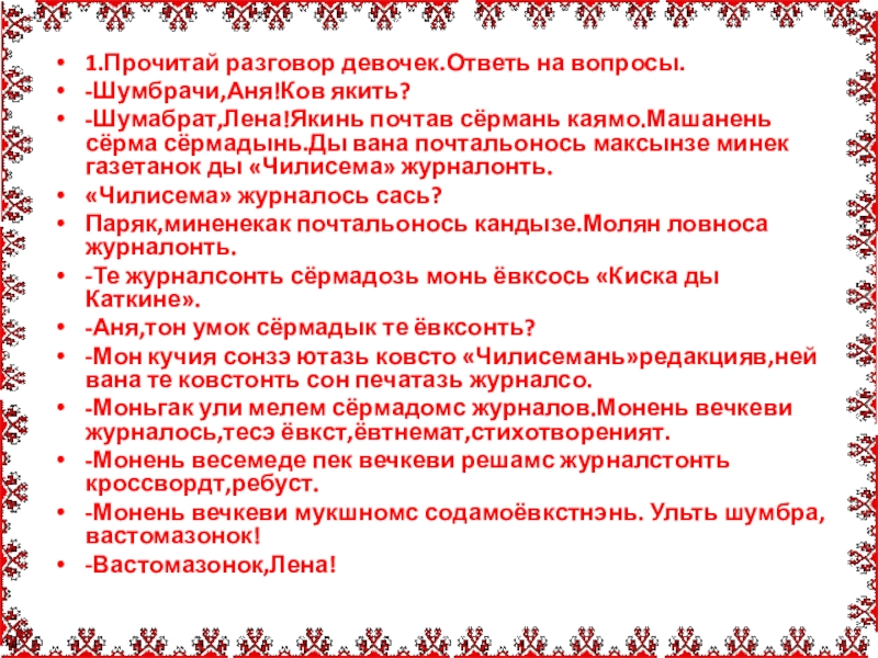 Слайд 41.Прочитай разговор девочек.Ответь на вопросы.