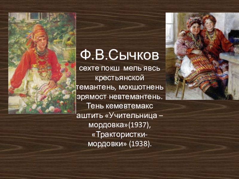 Слайд 6Ф.В.Сычков- автор картин: «Учительница мордовка»(1937), «Трактористки-мордовки» (1938).
