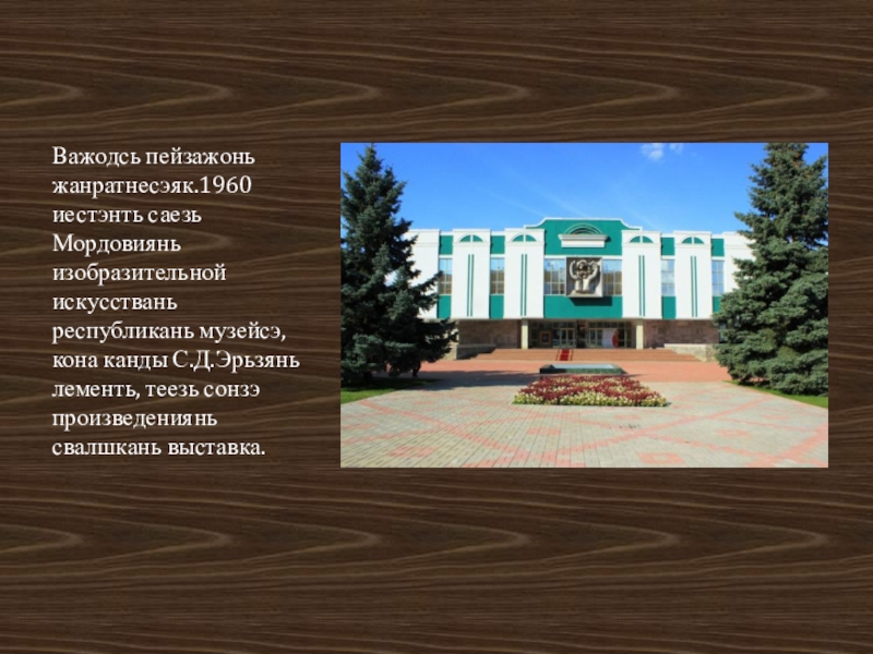 Слайд 4Важодсь пейзажонь жанратнесэяк.1960 иестэнть саезь Мордовиянь изобразительной искусствань республикань музейсэ, кона