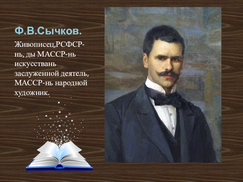 Ф.В.Сычков.Живописец,РСФСР-нь, ды МАССР-нь искусствань заслуженной деятель,МАССР-нь народной художник.