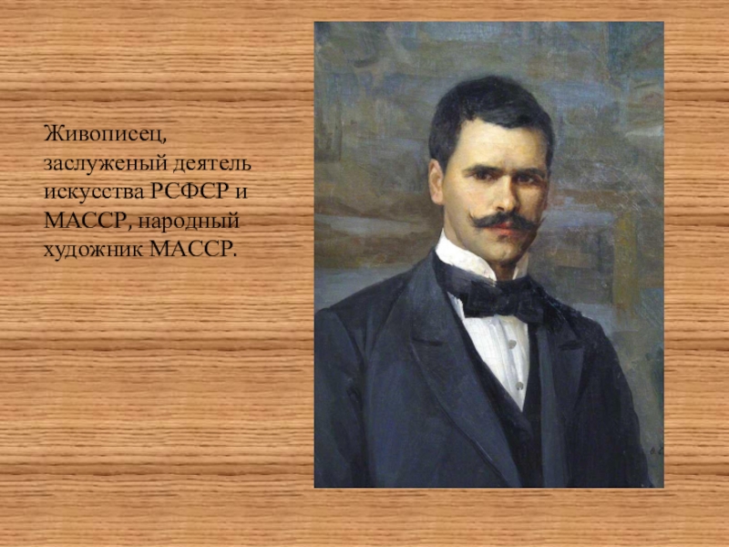 Слайд 5Живописец, заслуженый деятель искусства РСФСР и МАССР, народный художник МАССР.