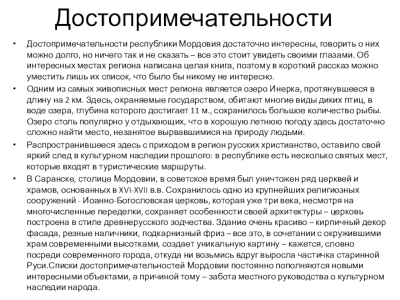 Достопримечательности республики Мордовия достаточно интересны, говорить о них можно долго, но