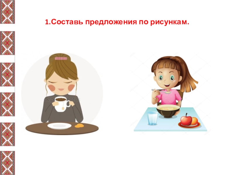 Слайд 32.Скажите по-эрзянски,какие названия продуктов помнишь.Используя образец,скажи,что ты любишь.