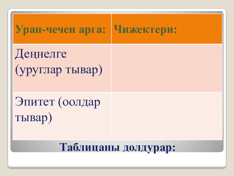 Слайд 9Таблицаны долдурар: