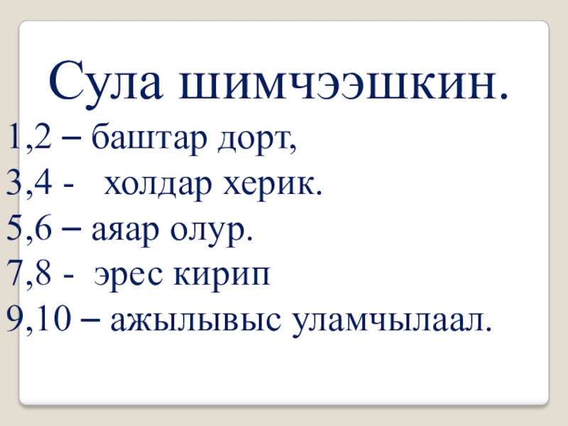 Слайд 7Сула шимчээшкин.