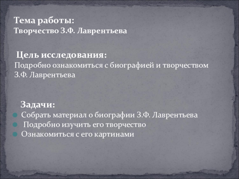 Проведение поисков работы о З. Ф. Лаврентьеве.