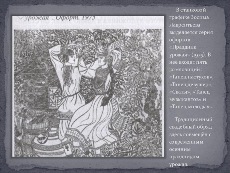 Слайд 17 В станковой графике Зосима Лаврентьева выделяется серия офортов