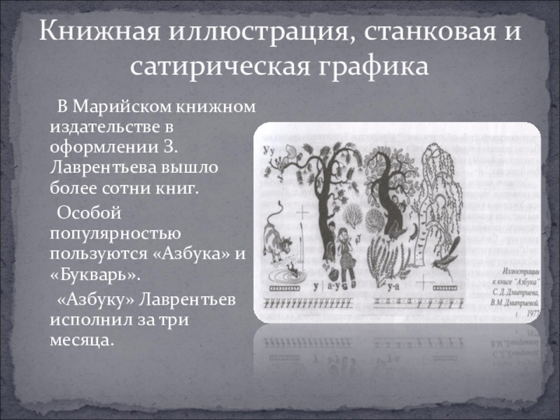 Слайд 15Книжная иллюстрация, станковая и сатирическая графика