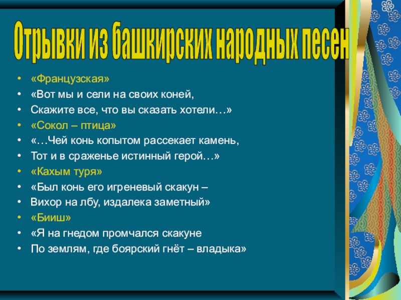 Отрывки из башкирских народных песен