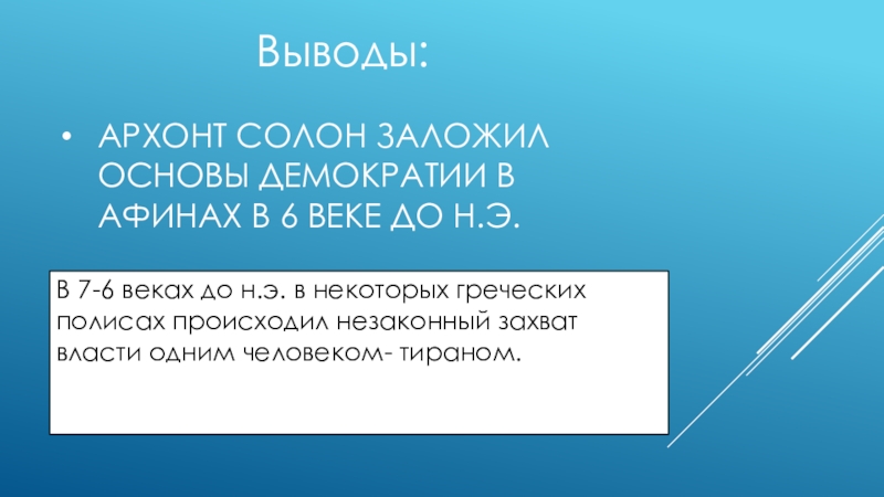 В 7-6 веках до н.э. в некоторых греческих полисах происходил незаконный захват власти одним человеком- тираном.