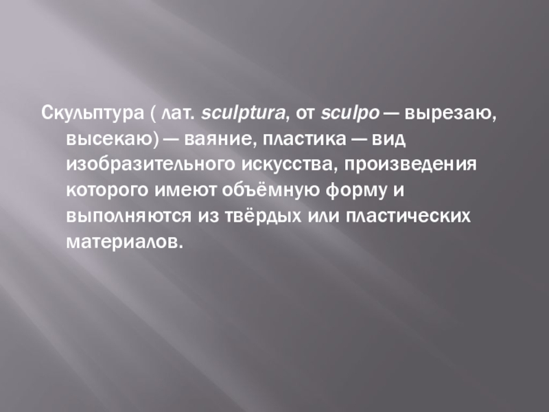 Слайд 2Скульптура ( лат. sculptura, от sculpo — вырезаю, высекаю) — ваяние, пластика — вид  изобразительного искусства, произведения