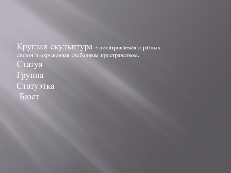 Слайд 3Круглая скульптура - осматриваемая с разных сторон и окруженная свободным пространством.