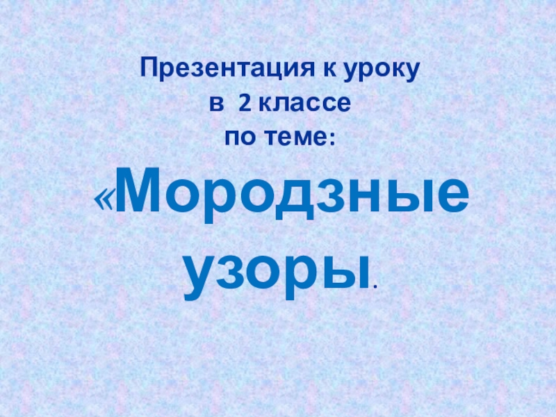 Презентация к урокув 2 классепо теме:«Мородзные узоры.