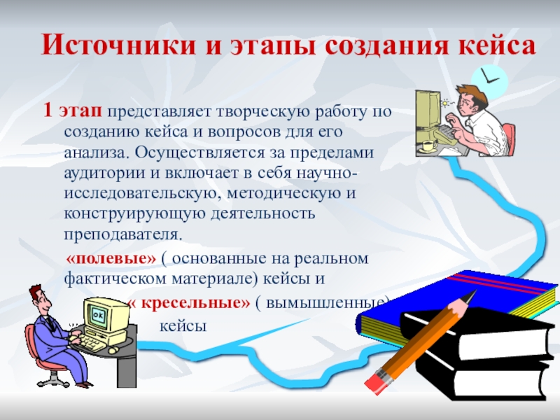 кейса и вопросов для его анализа. Осуществляется за пределами аудитории и включает в себя научно- исследовательскую, методическую и конструирующую деятельность преподавателя.