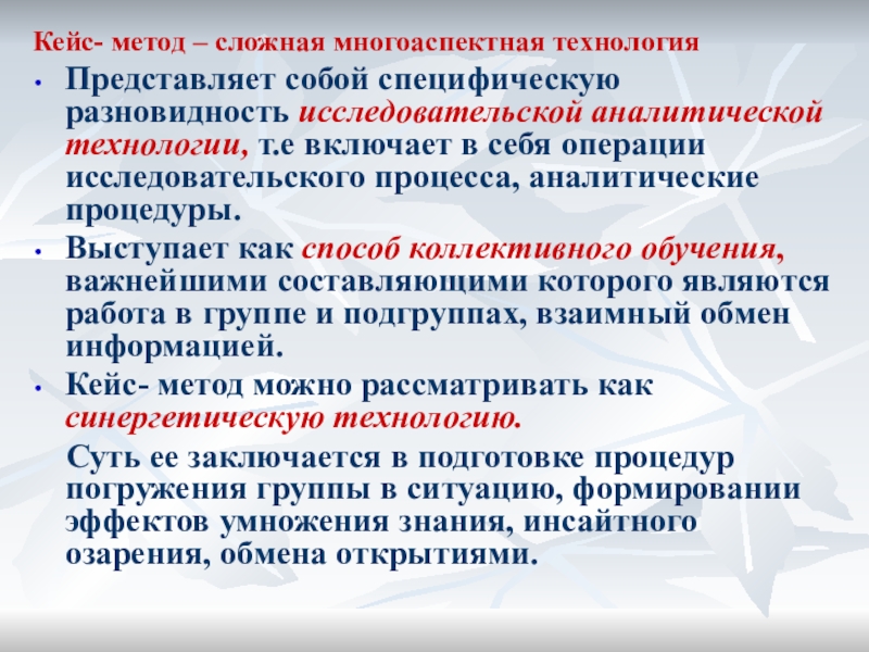 Слайд 17Кейс- метод – сложная многоаспектная технология