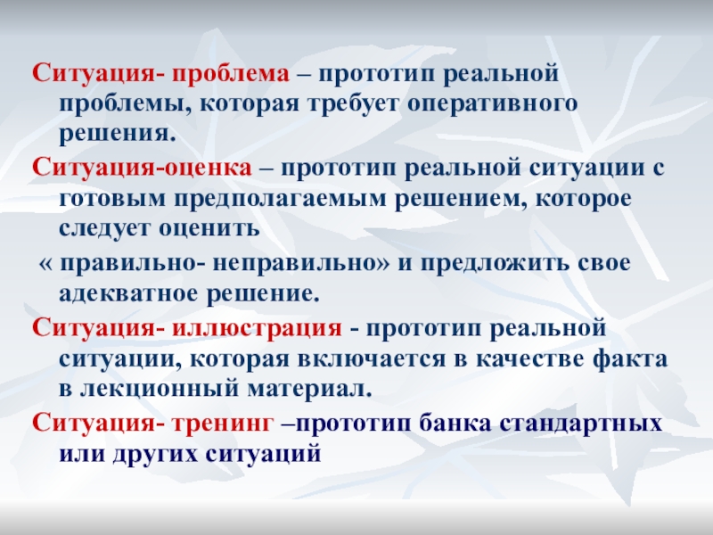 Слайд 4Ситуация- проблема – прототип реальной проблемы, которая требует оперативного решения.