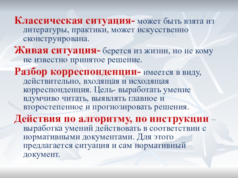 Слайд 6Классическая ситуация- может быть взята из литературы, практики, может искусственно сконструирована.