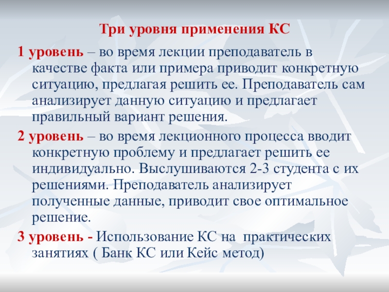 3 уровень - Использование КС на практических занятиях ( Банк КС или Кейс метод)