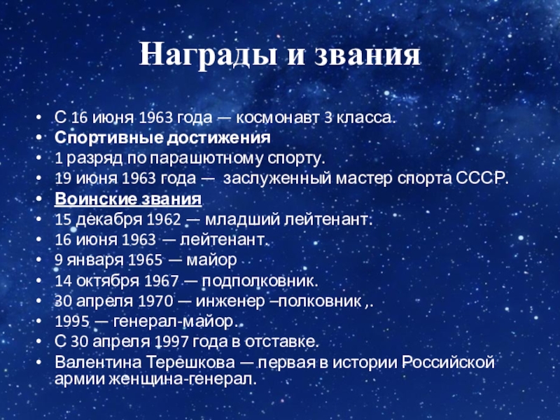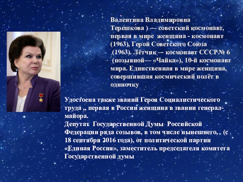 Удостоена также званий Героя Социалистического труда ,, первая в России женщина в звании генерал-майора.