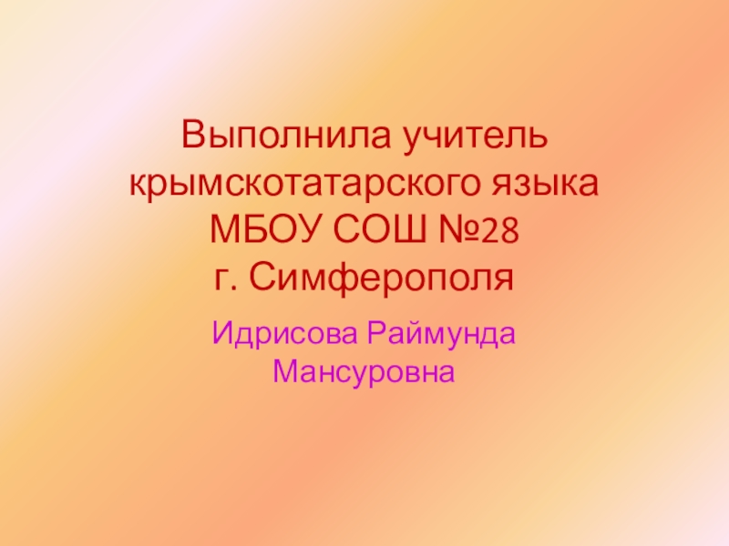 Слайд 1Выполнила учитель крымскотатарского языка МБОУ СОШ №28 г. Симферополя